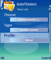 AutoThemes allows creating two types of rules: time based rule and profile based ones. Nokia theme can be changed at exact time, or can be changed when certain profile is activated.